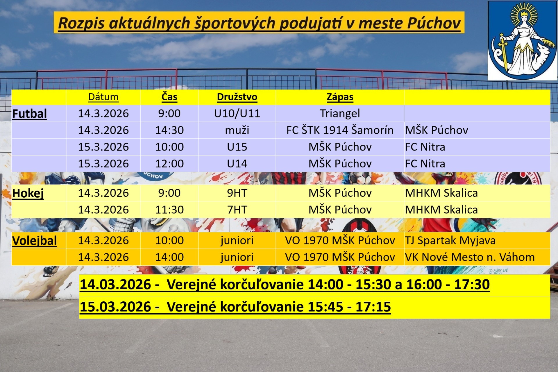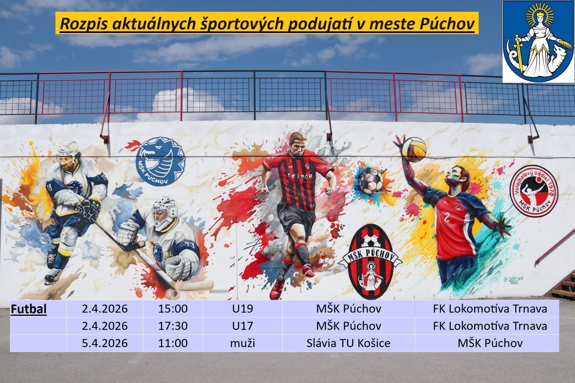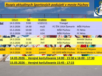 Rozpisy športových podujatí MŠK Púchov v aktuálnom týždni